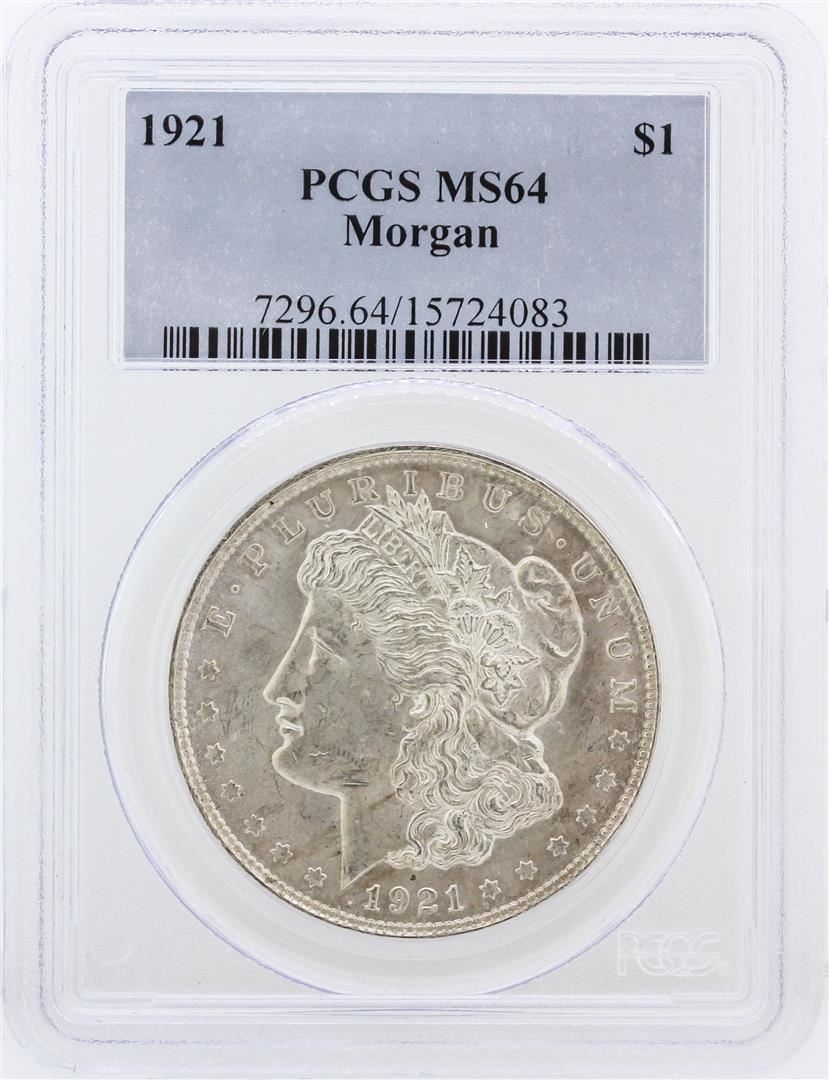 One 1921 PCGS MS64 Morgan Silver Dollar. PCGS Certified.