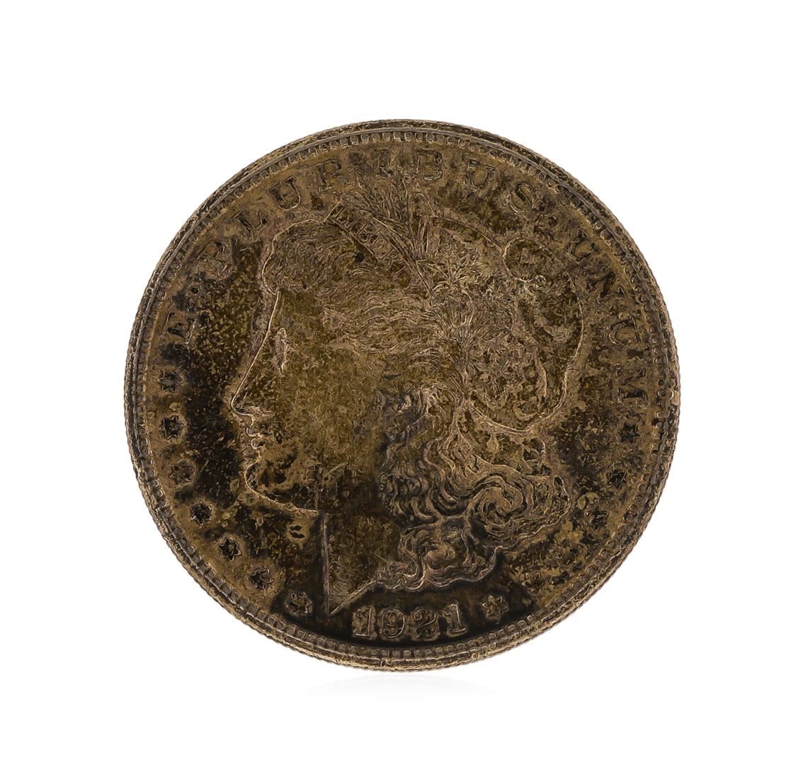 One 1921-S Morgan Silver Dollar.