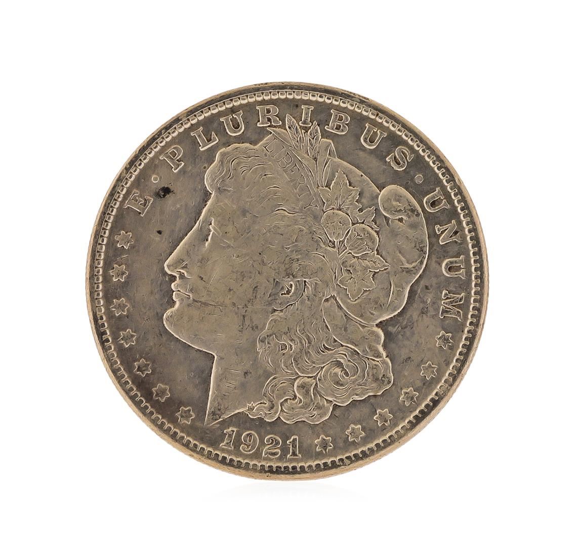 One 1921-S Morgan Silver Dollar.