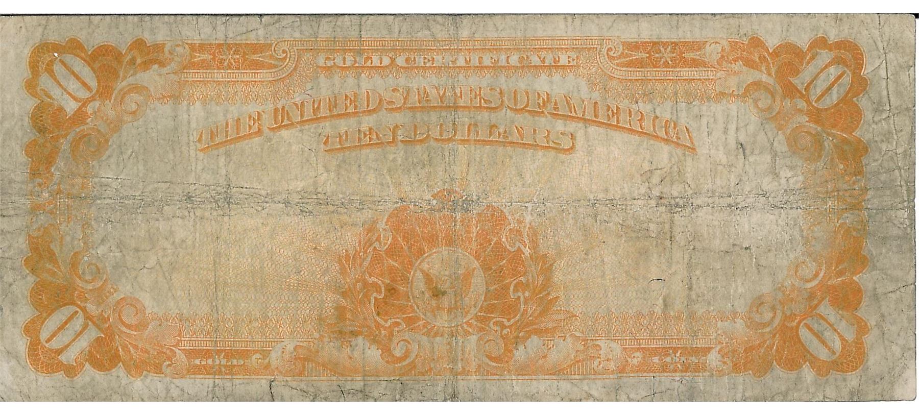 One 1922 $10 Gold Certificate Bank Note. The serial number is 7506709.