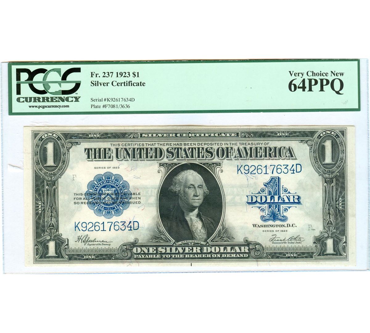 One 1923 $1 Silver Certificate FR-237 PMG Graded Very Choice New 64 PPQ.
