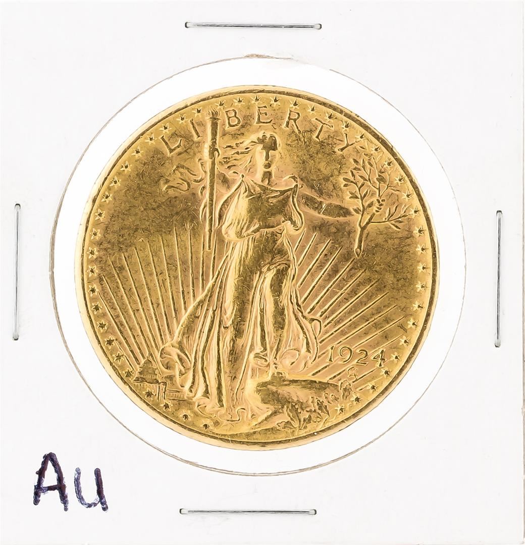 One 1924 $20 Au St. Gaudens Double Eagle Coin.