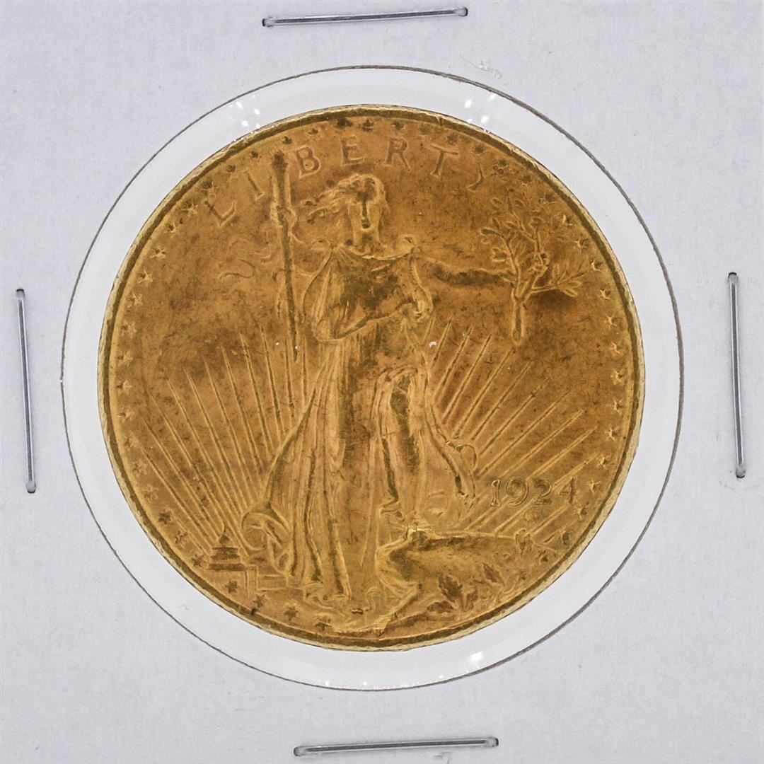 One 1924 $20 BU St. Gaudens Double Eagle Gold Coin.