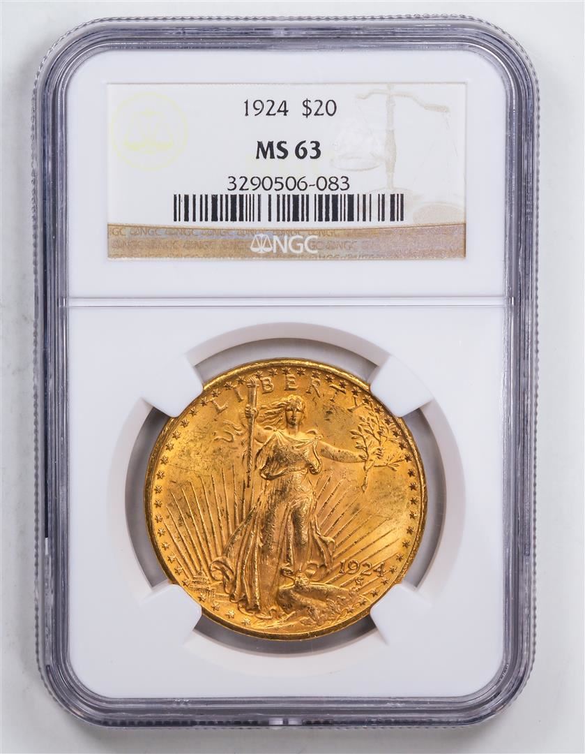 One 1924 $20 Double Eagle Gold Coin NGC MS63.