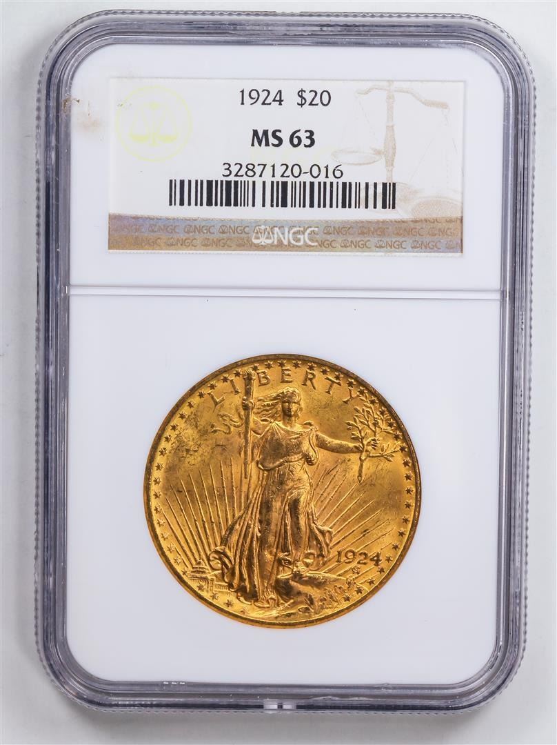 One 1924 $20 Double Eagle Gold Coin NGC MS63.
