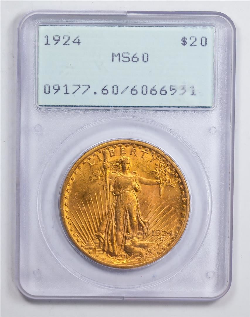 One 1924 $20 Double Eagle Gold Coin PCGS MS60.
