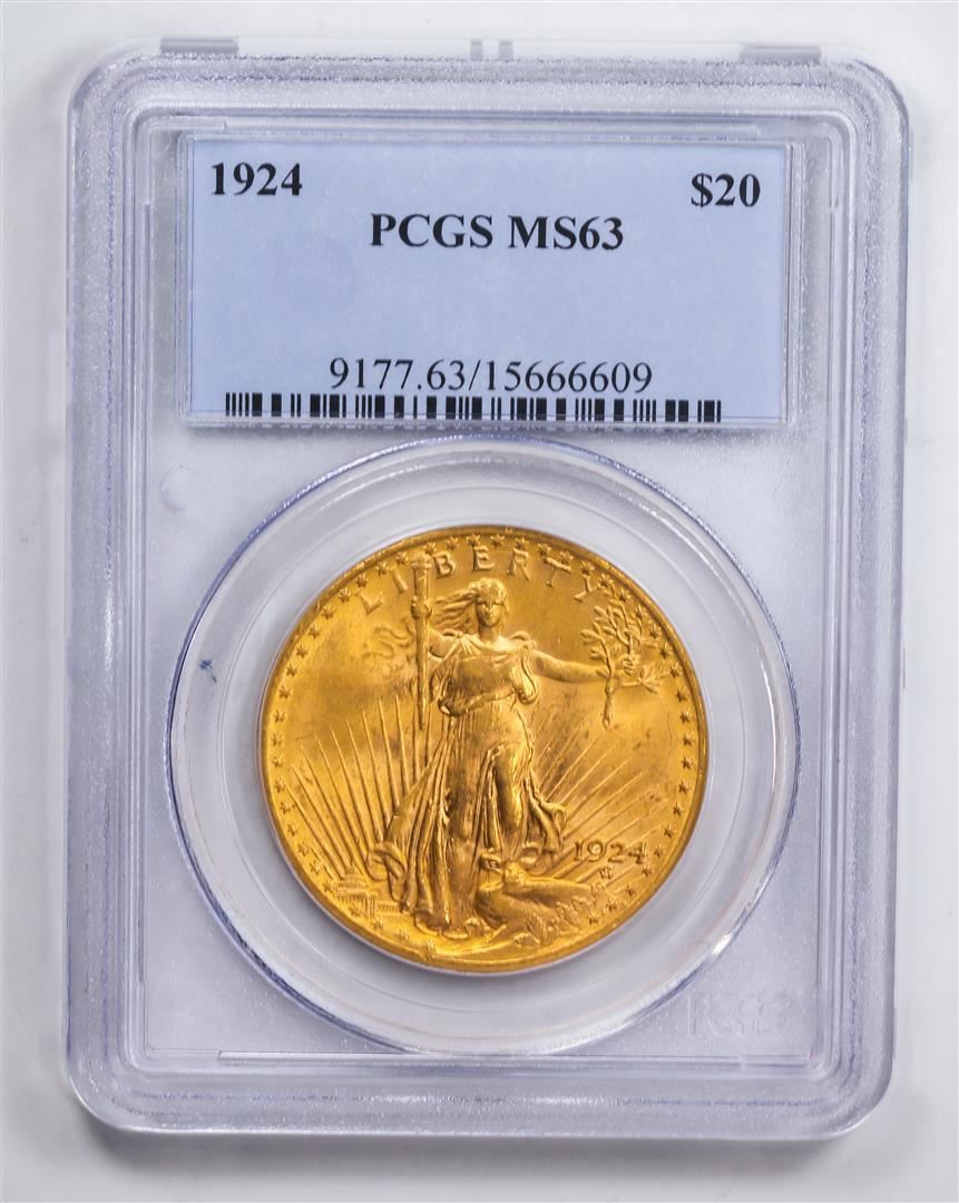 One 1924 $20 Double Eagle Gold Coin PCGS MS63.