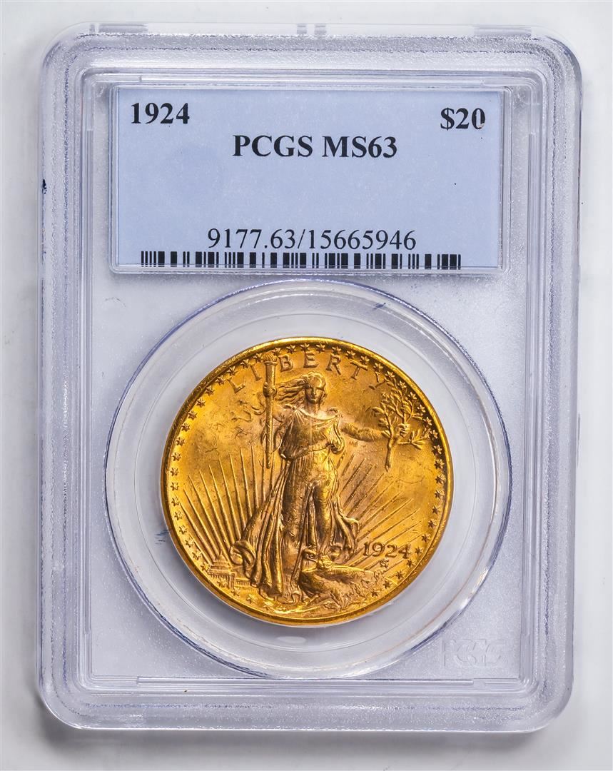 One 1924 $20 Double Eagle Gold Coin PCGS MS63.