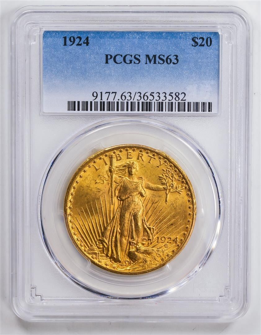 One 1924 $20 Double Eagle Gold Coin PCGS MS63.