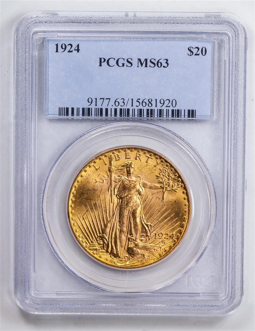 One 1924 $20 Double Eagle Gold Coin PCGS MS63.