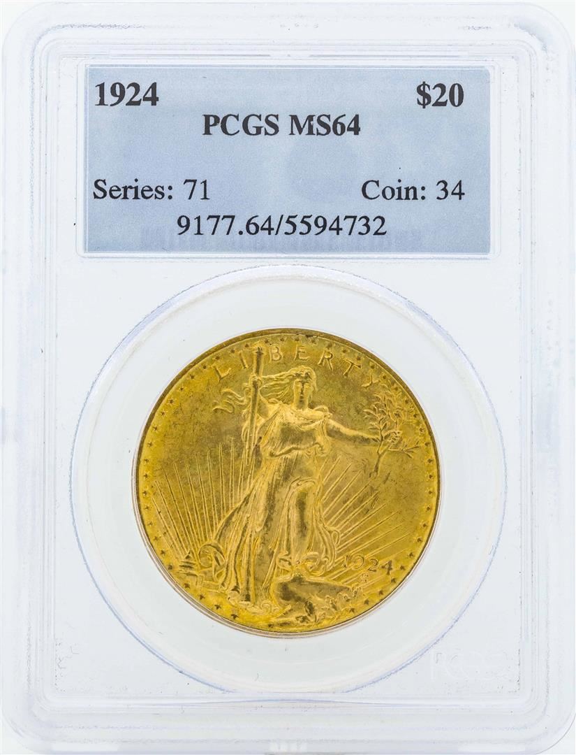 One 1924 $20 St. Gaudens Double Eagle Gold Coin PCGS MS64. PCGS Certified.