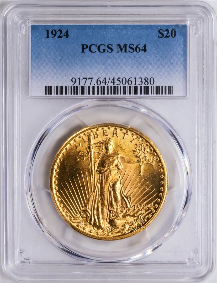 One 1924 $20 St. Gaudens Double Eagle Gold Coin PCGS MS64.