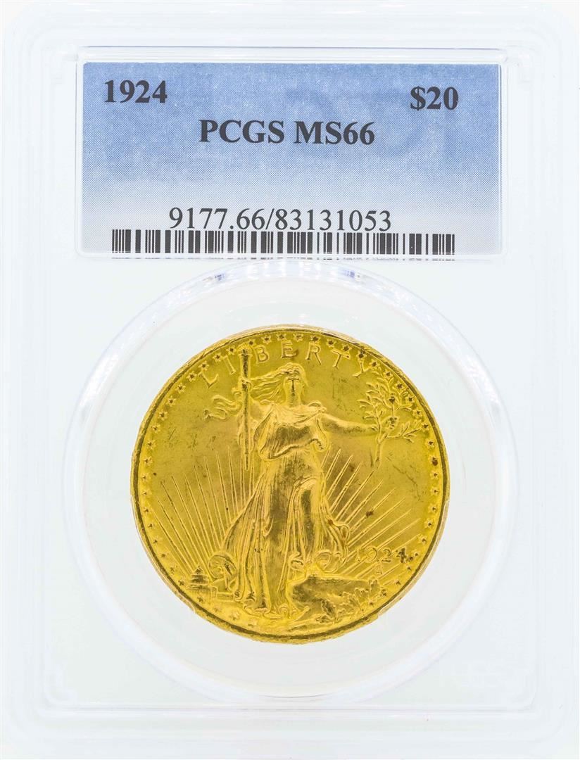 One 1924 $20 St. Gaudens Double Eagle Gold Coin PCGS MS66. PCGS Certified.