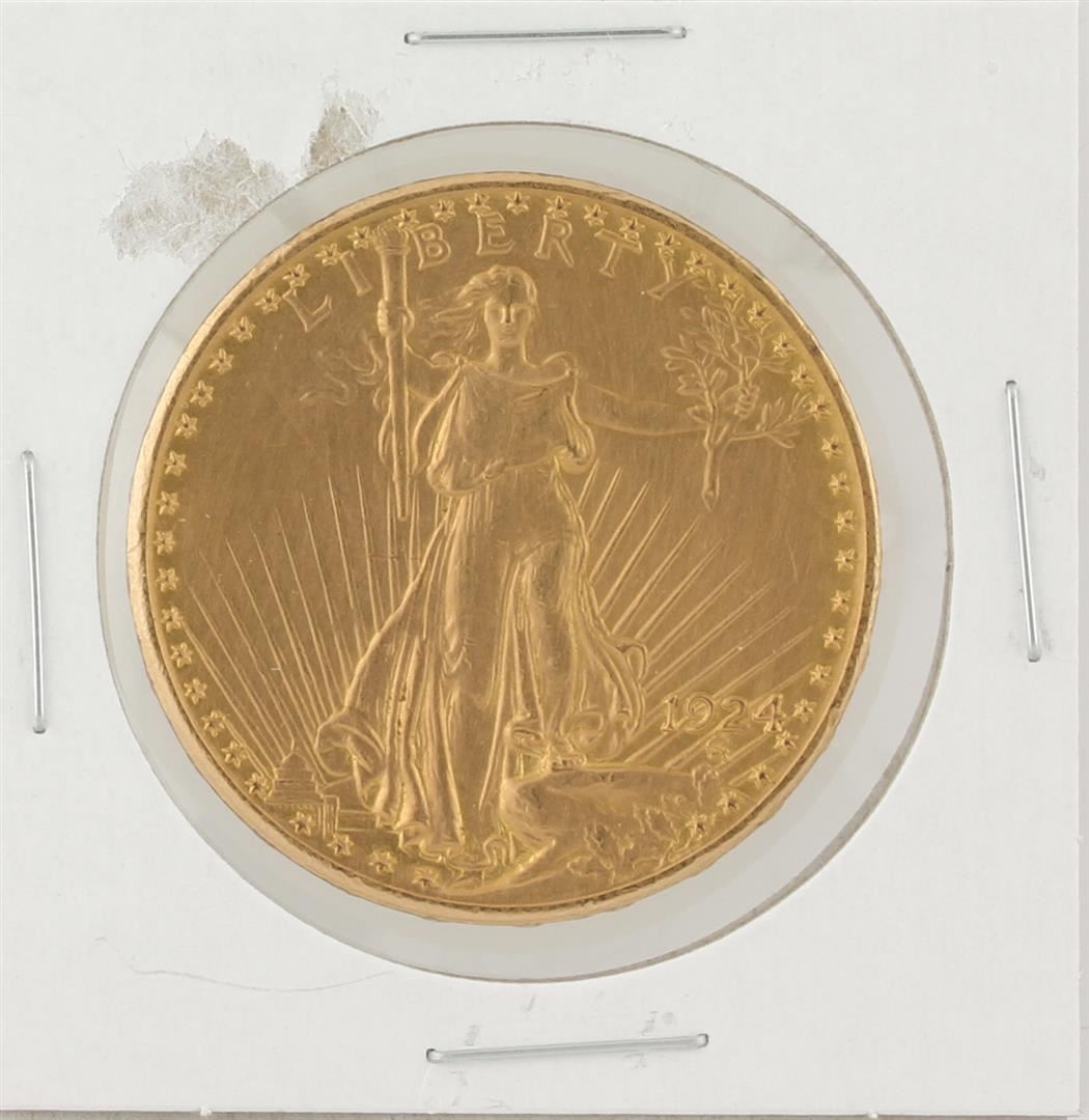 One 1924 $20 St. Gaudens Double Eagle Coin.