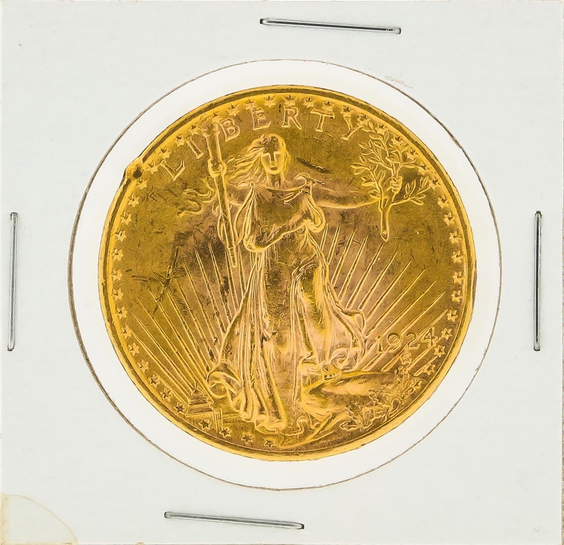 One 1924 $20 St. Gaudens Double Eagle Gold Coin.