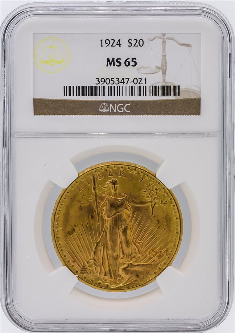 One 1924 NGC MS65 $20 St Gaudens Double Eagle Gold Coin. NGC Certified.