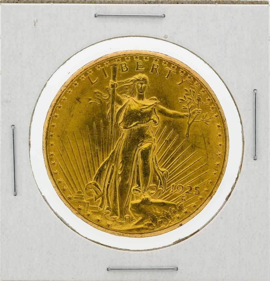 One 1925 $20 BU St. Gaudens Double Eagle Gold Coin.