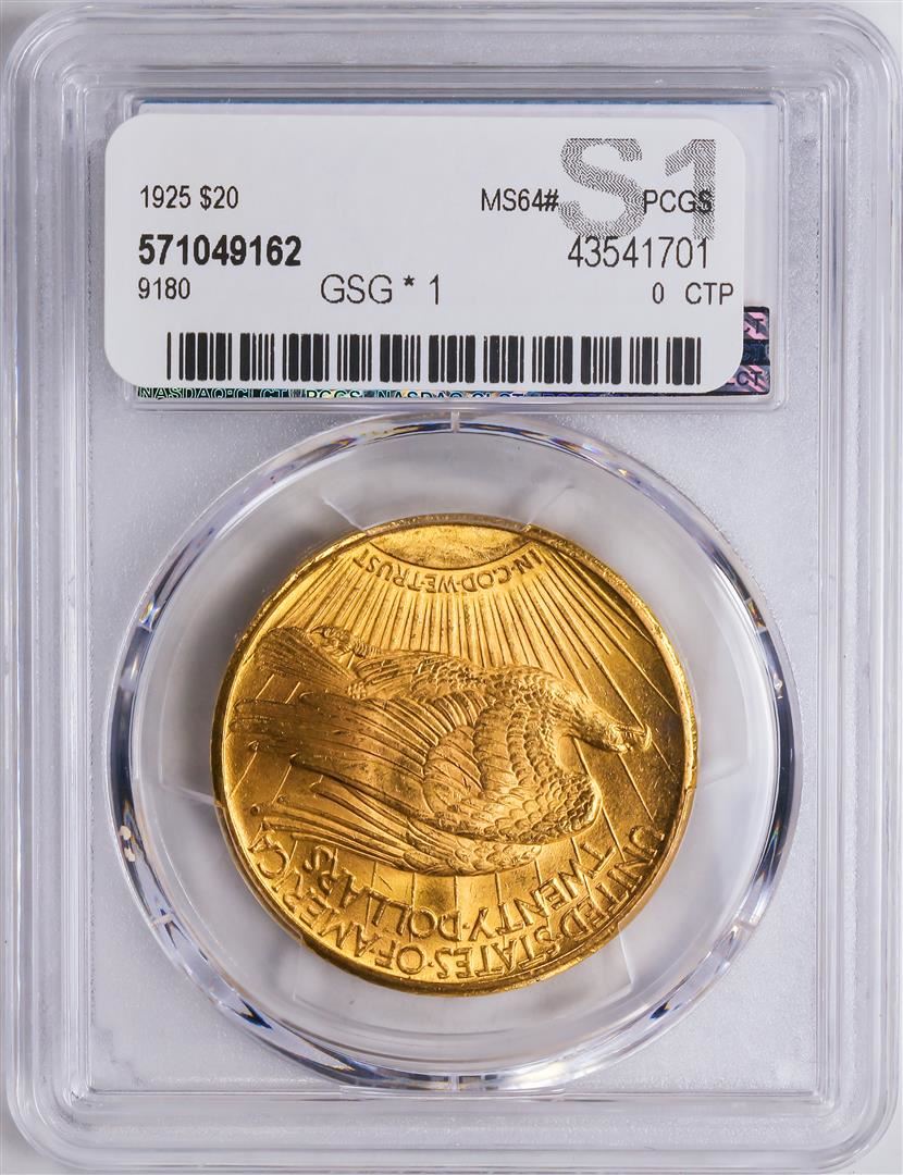 One 1925 $20 St. Gaudens Double Eagle Gold Coin PCGS MS64.