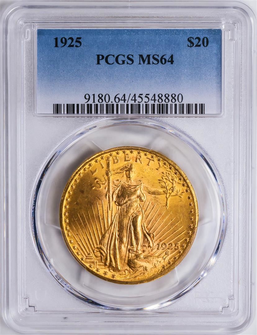 One 1925 $20 St. Gaudens Double Eagle Gold Coin PCGS MS64.