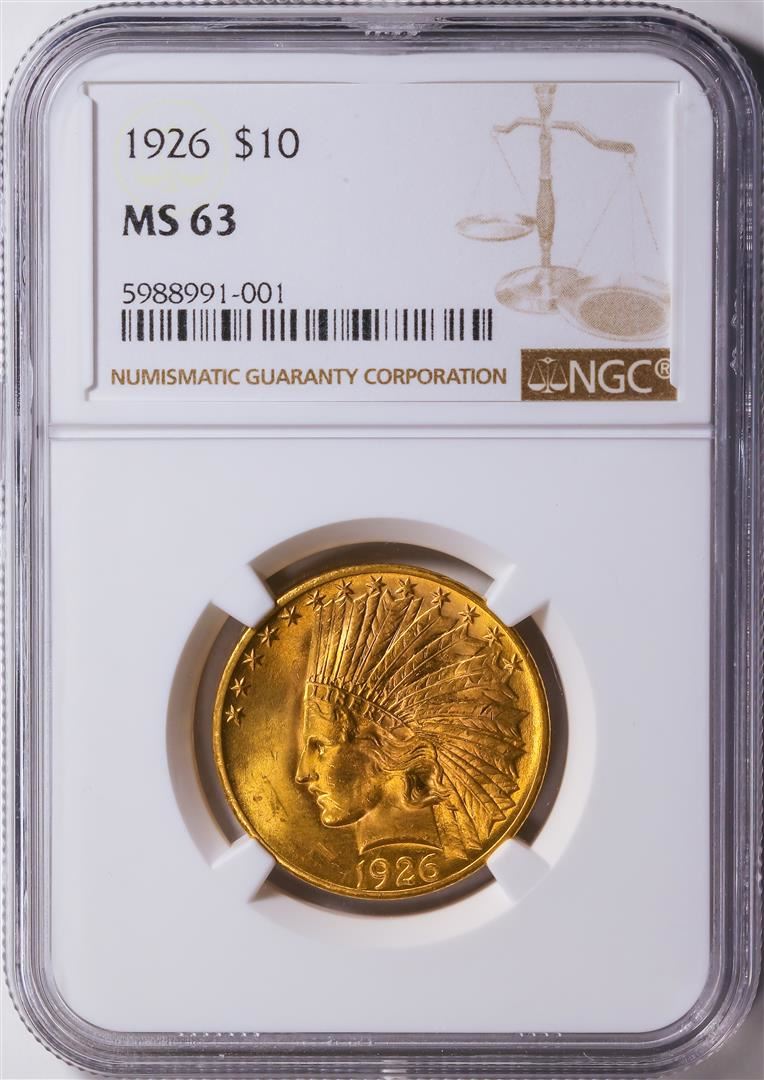 One 1926 $10 Indian Head Eagle Gold Coin NGC MS63.