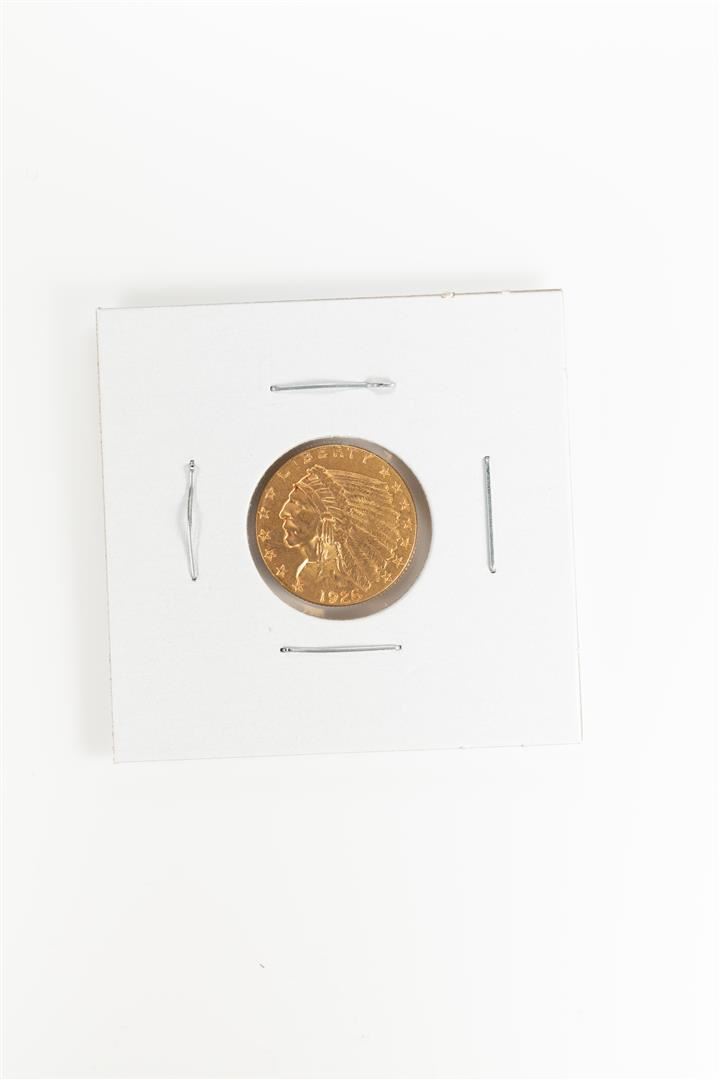One 1926 $2 1/2 Indian Head Quarter Eagle Gold Coin.