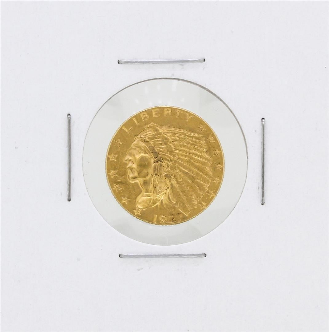 One 1927 $2.50 AU Indian Head Quarter Eagle Gold Coin.