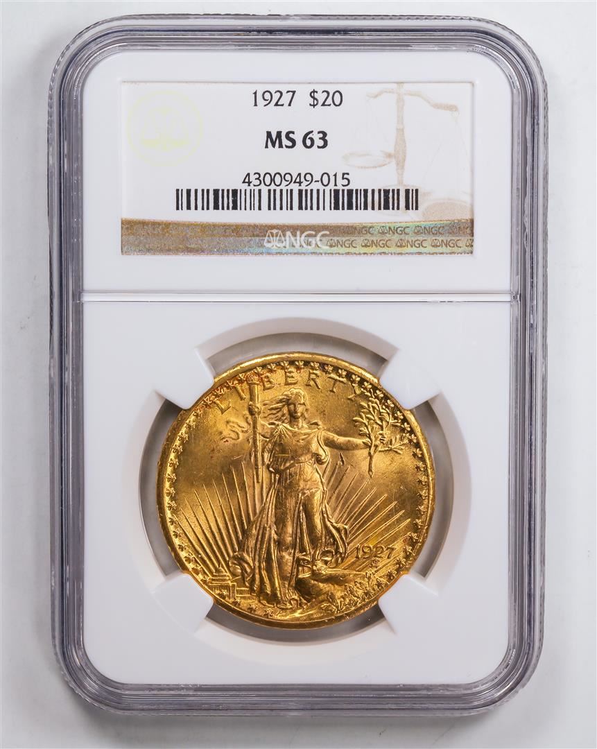 One 1927 $20 Double Eagle Gold Coin NGC MS63.