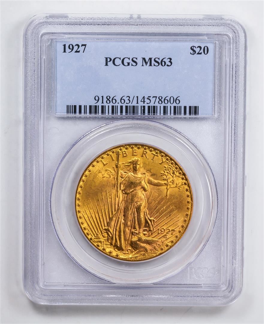 One 1927 $20 Double Eagle Gold Coin PCGS MS63.