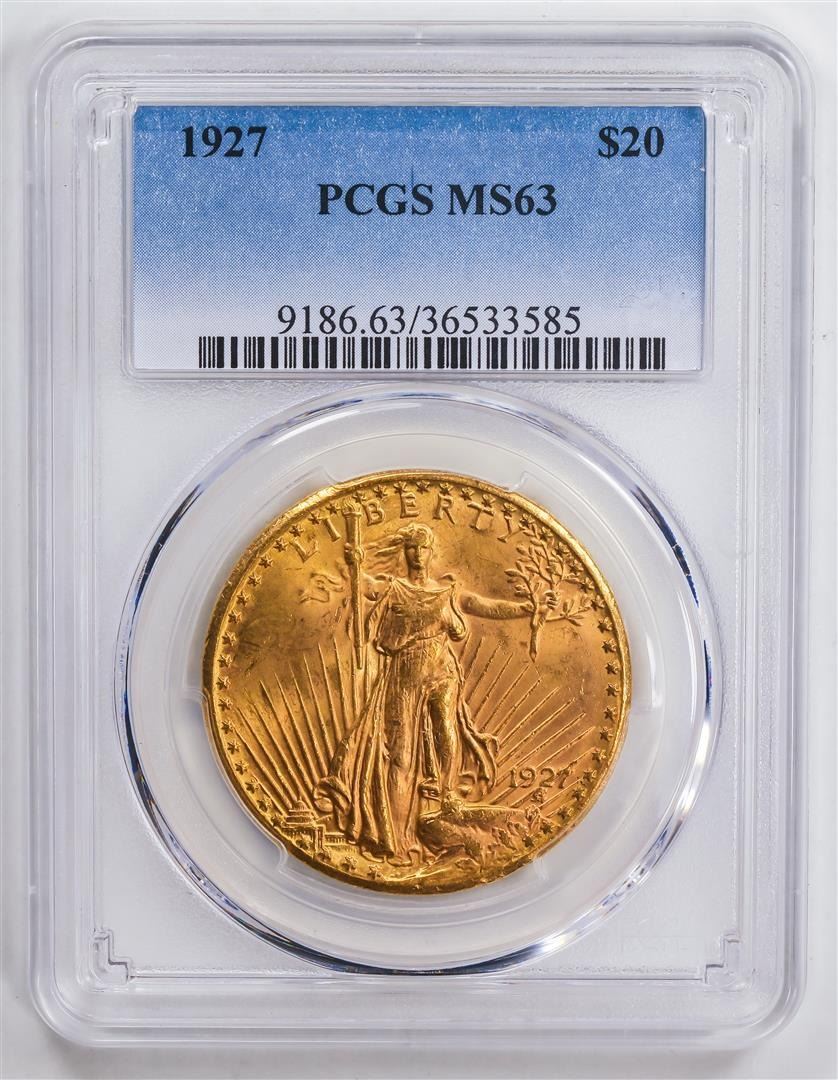 One 1927 $20 Double Eagle Gold Coin PCGS MS63.