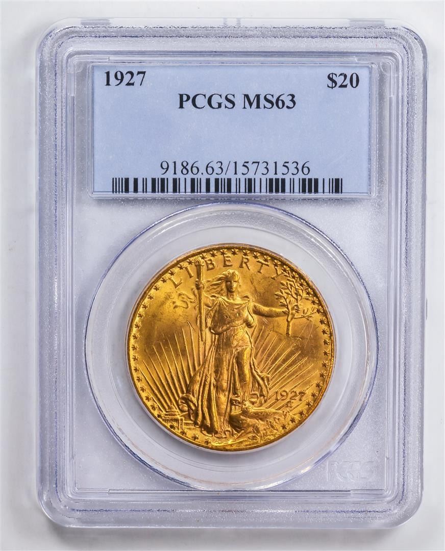 One 1927 $20 Double Eagle Gold Coin PCGS MS63.