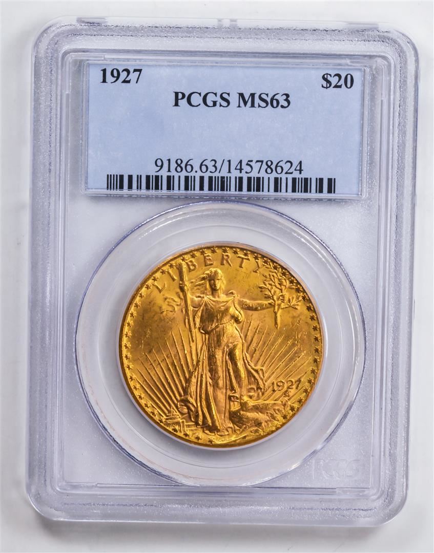 One 1927 $20 Double Eagle Gold Coin PCGS MS63.