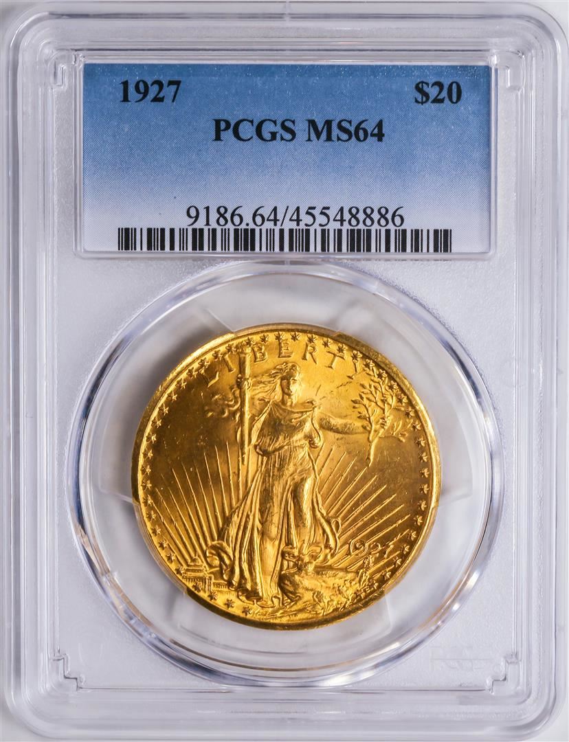 One 1927 $20 St. Gaudens Double Eagle Gold Coin PCGS MS64.