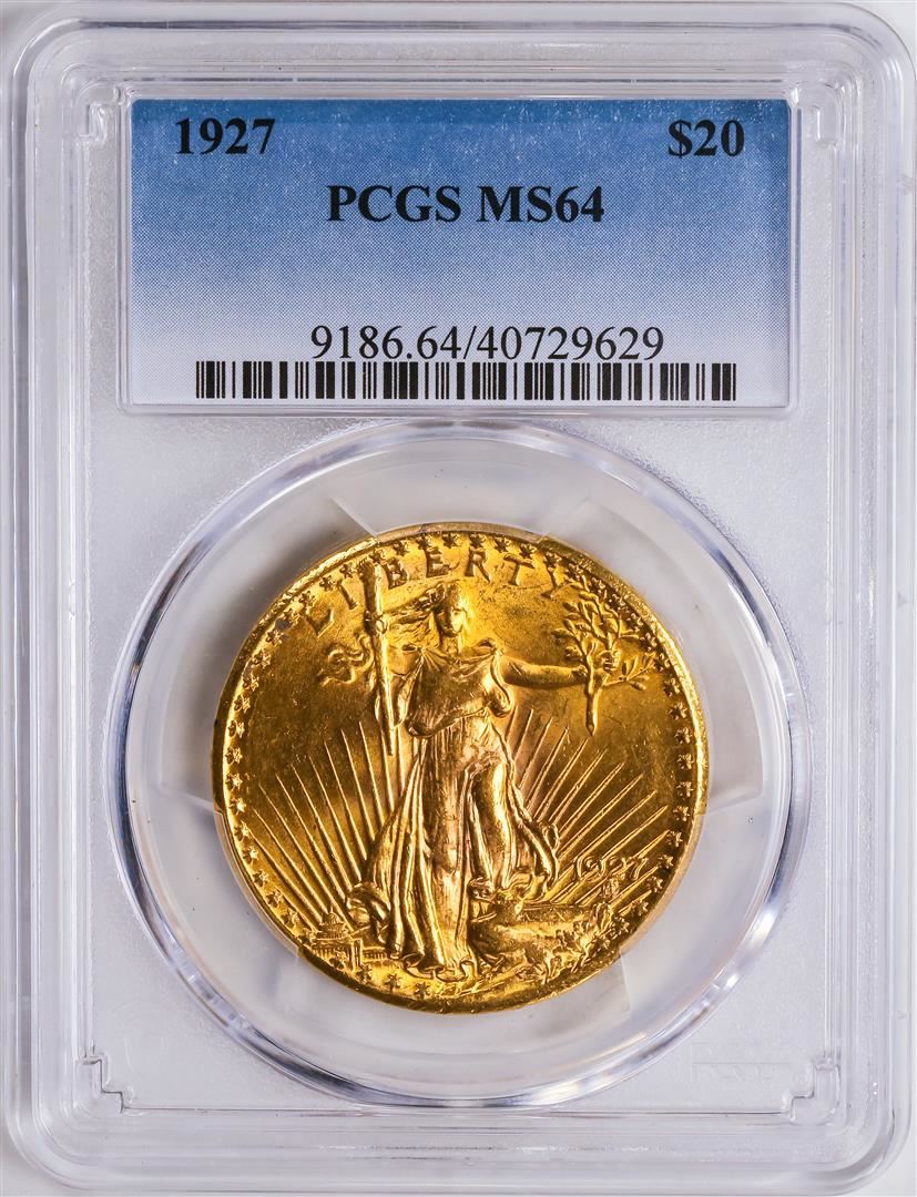 One 1927 $20 St. Gaudens Double Eagle Gold Coin PCGS MS64.