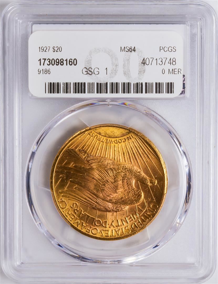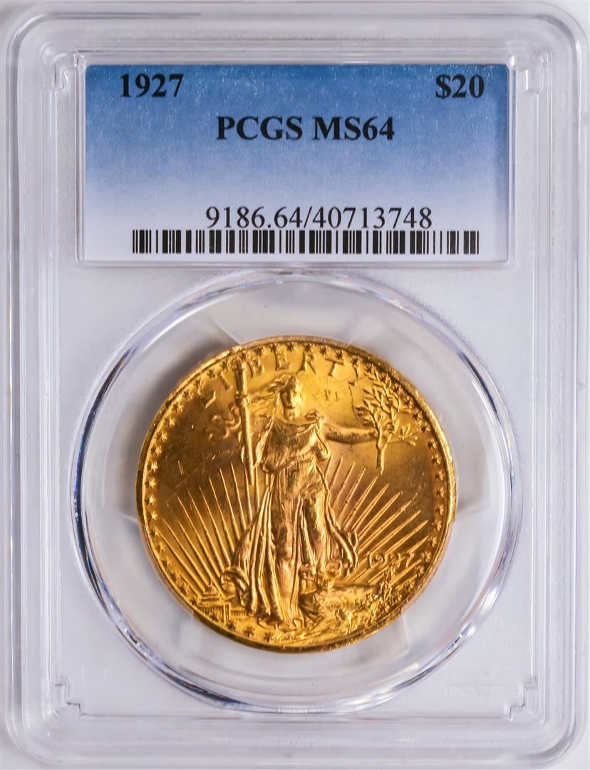 One 1927 $20 St. Gaudens Double Eagle Gold Coin PCGS MS64.