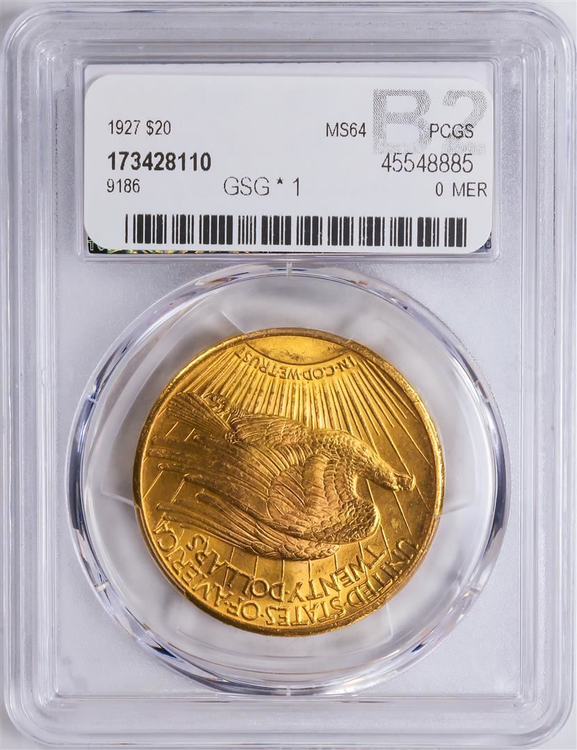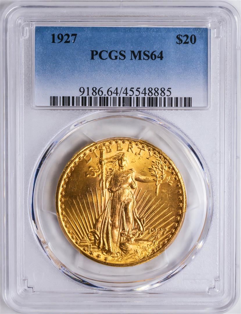 One 1927 $20 St. Gaudens Double Eagle Gold Coin PCGS MS64.