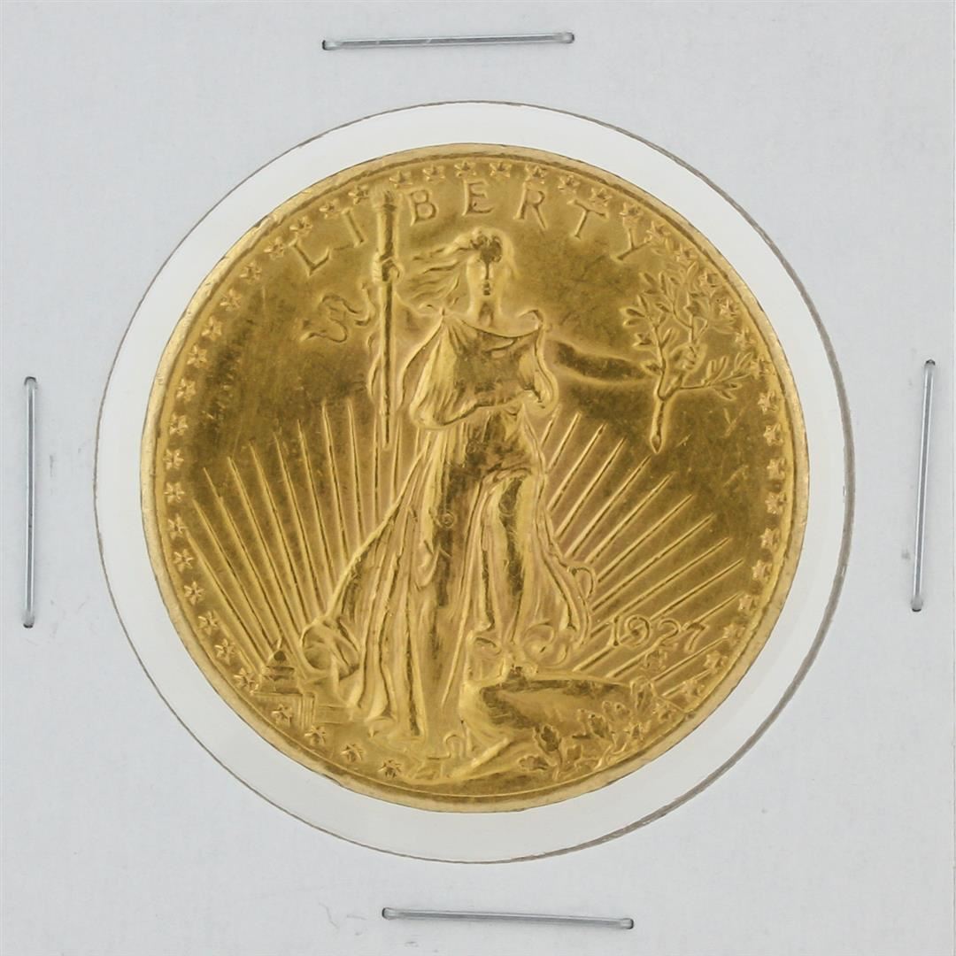 One 1927 $20 St. Gaudens Double Eagle Gold Coin.