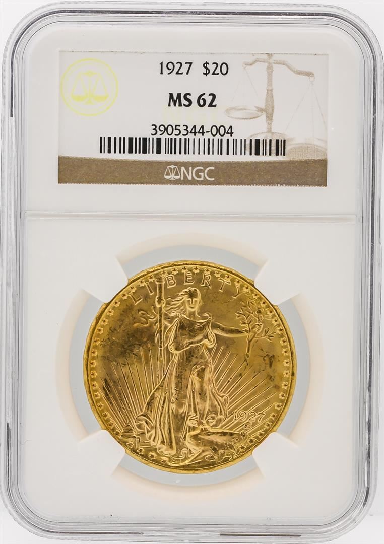 One 1927 NGC MS62 $20 St. Gaudens Double Eagle Gold Coin. NGC Certified.