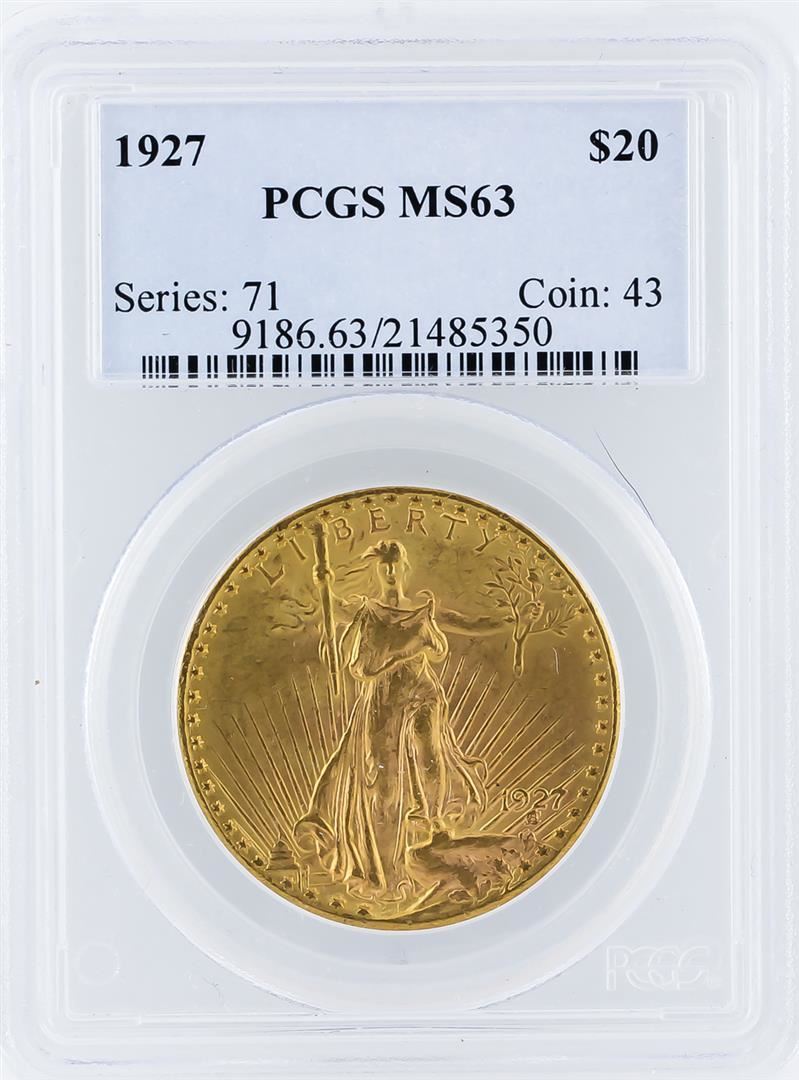 One 1927 PCGS MS63 $20 St. Gaudens Double Eagle Coin. PCGS Certified.