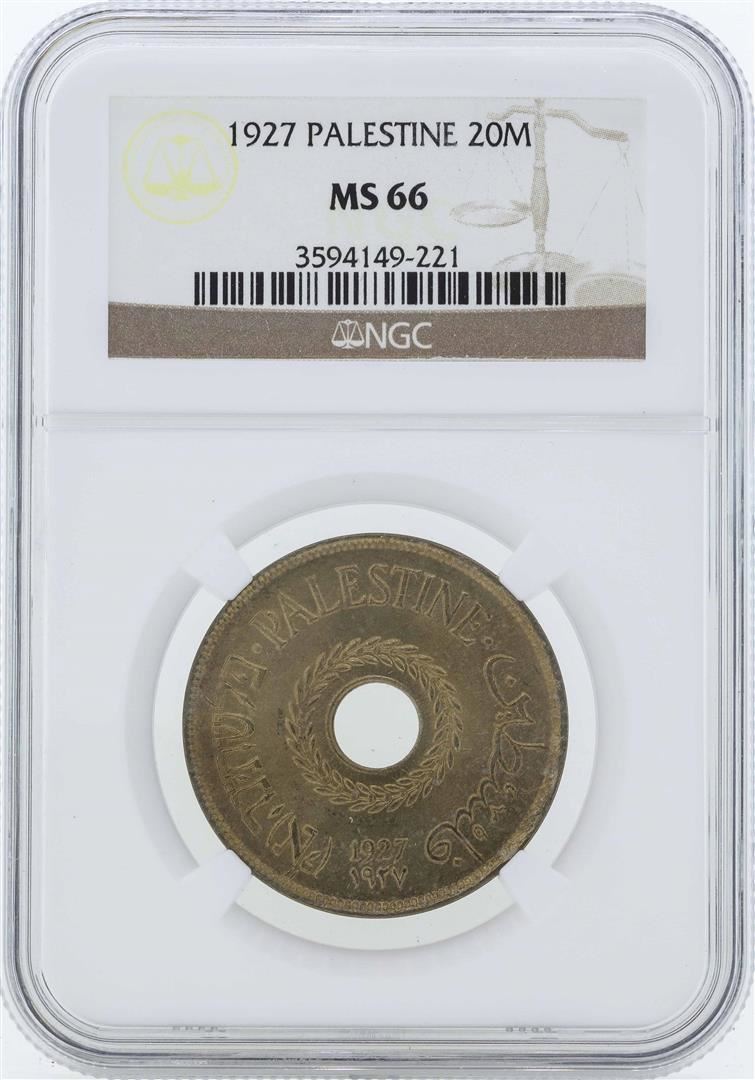 One 1927 Palestine 20 Mils Coin NGC MS66. NGC Certified.