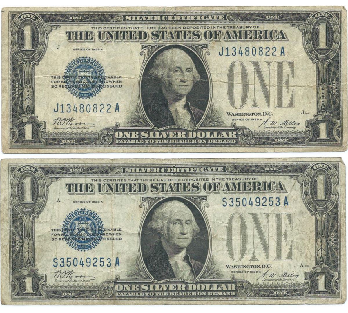 One 1928 $1 Silver Certificate Currency Lot of 2.
