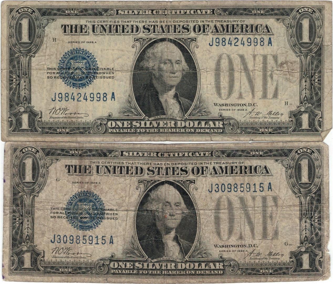 One 1928 $1 Silver Certificate Currency Lot of 2.