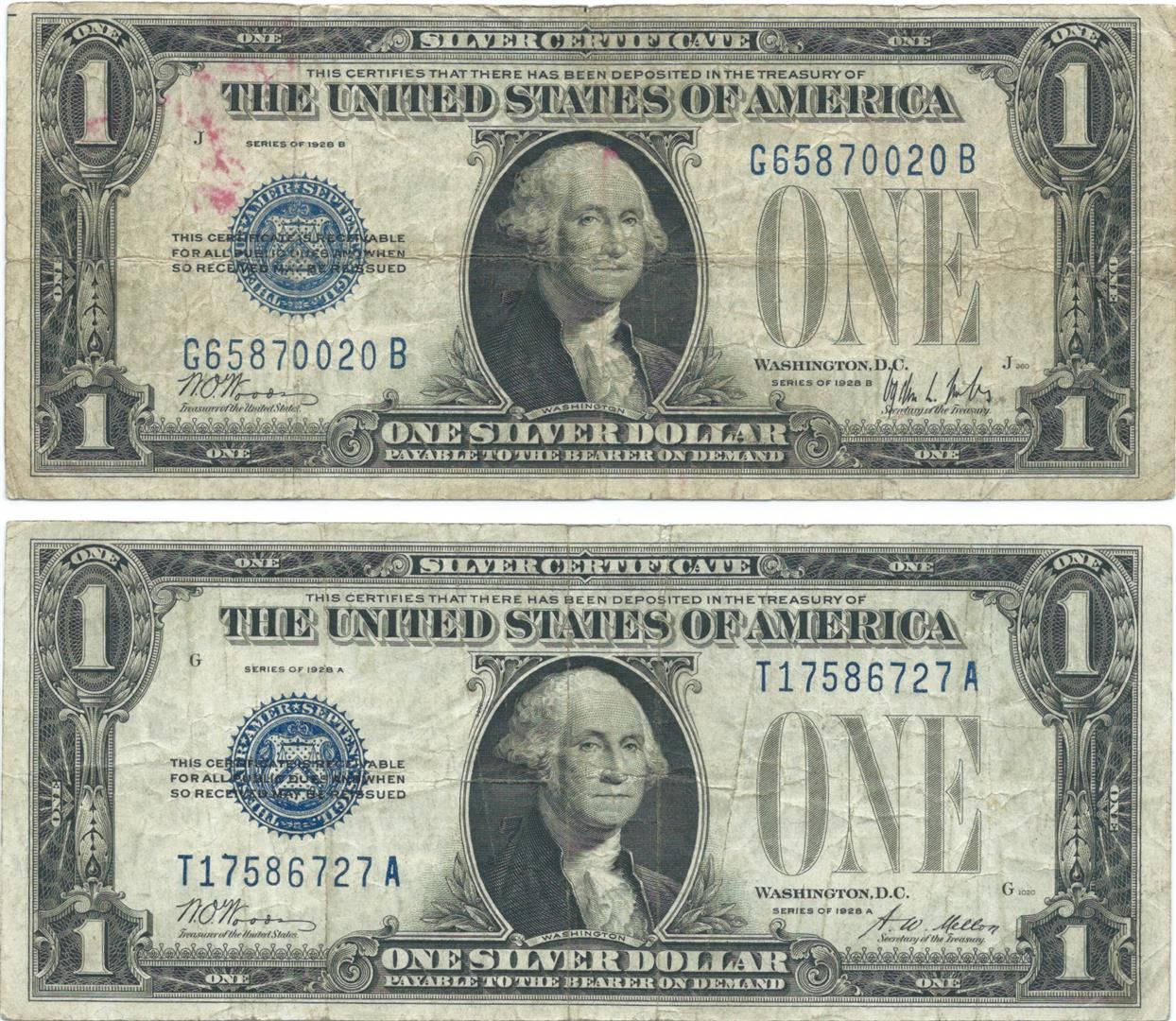 One 1928 $1 Silver Certificate Currency Lot of 2.