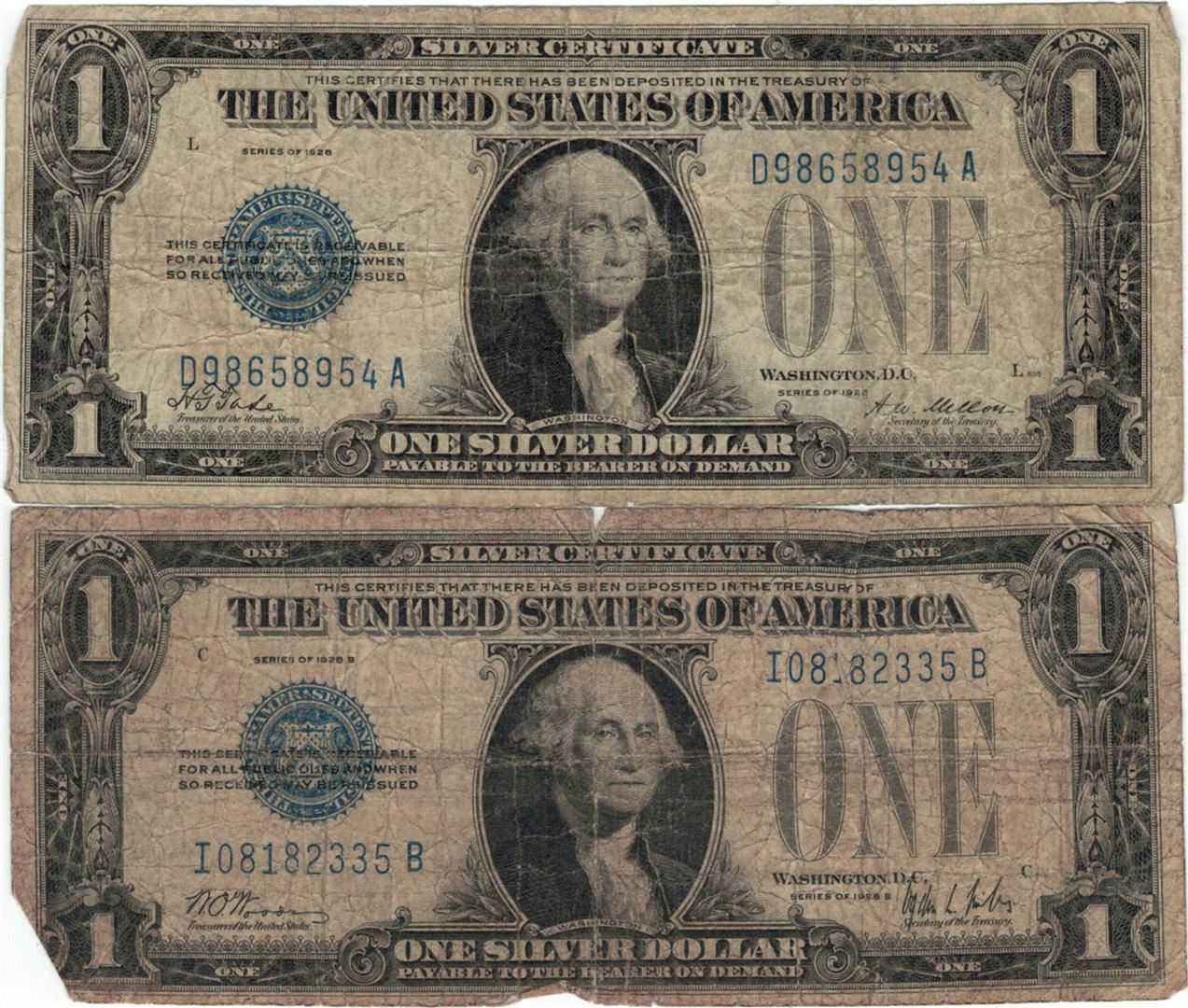 One 1928 $1 Silver Certificate Currency Lot of 2.