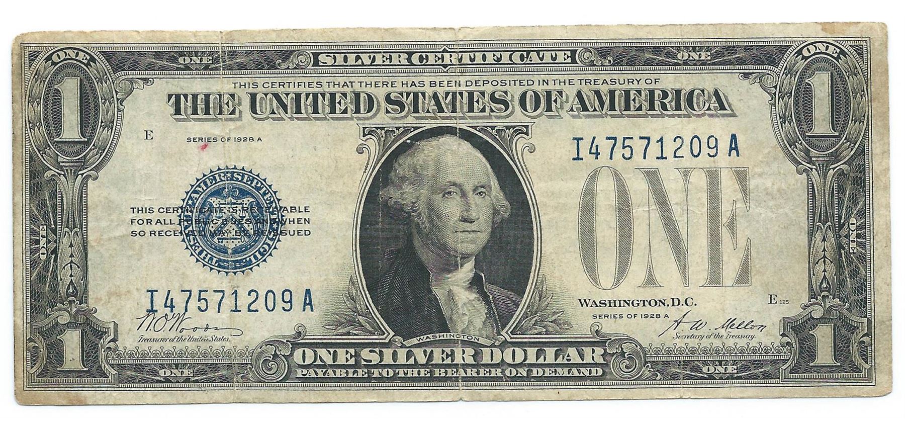 One 1928 $1 Silver Funny Back Cerificate