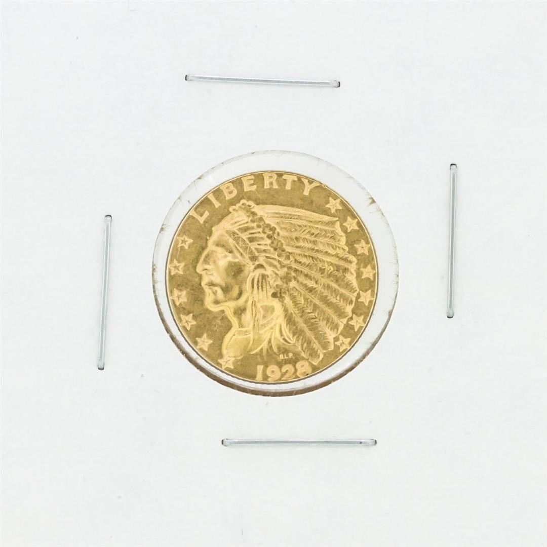 One 1928 $2.50 CU Indian Head Quarter Eagle Coin.