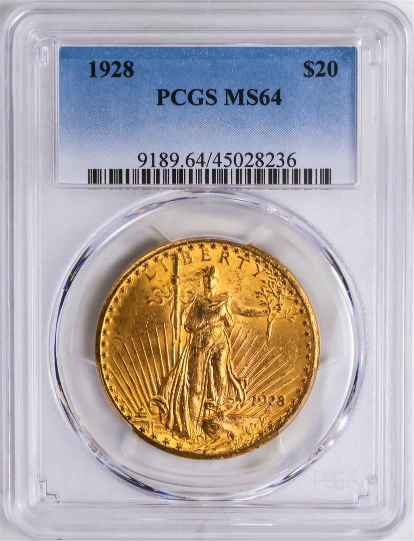 One 1928 $20 St. Gaudens Double Eagle Gold Coin PCGS MS64.