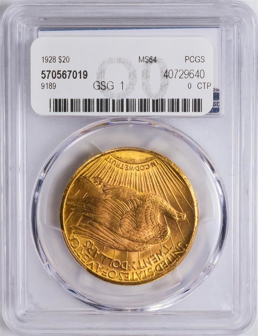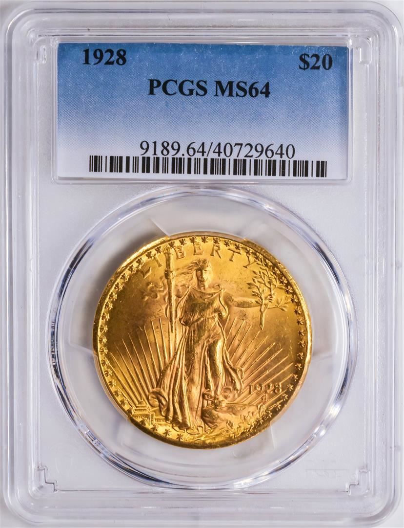 One 1928 $20 St. Gaudens Double Eagle Gold Coin PCGS MS64.