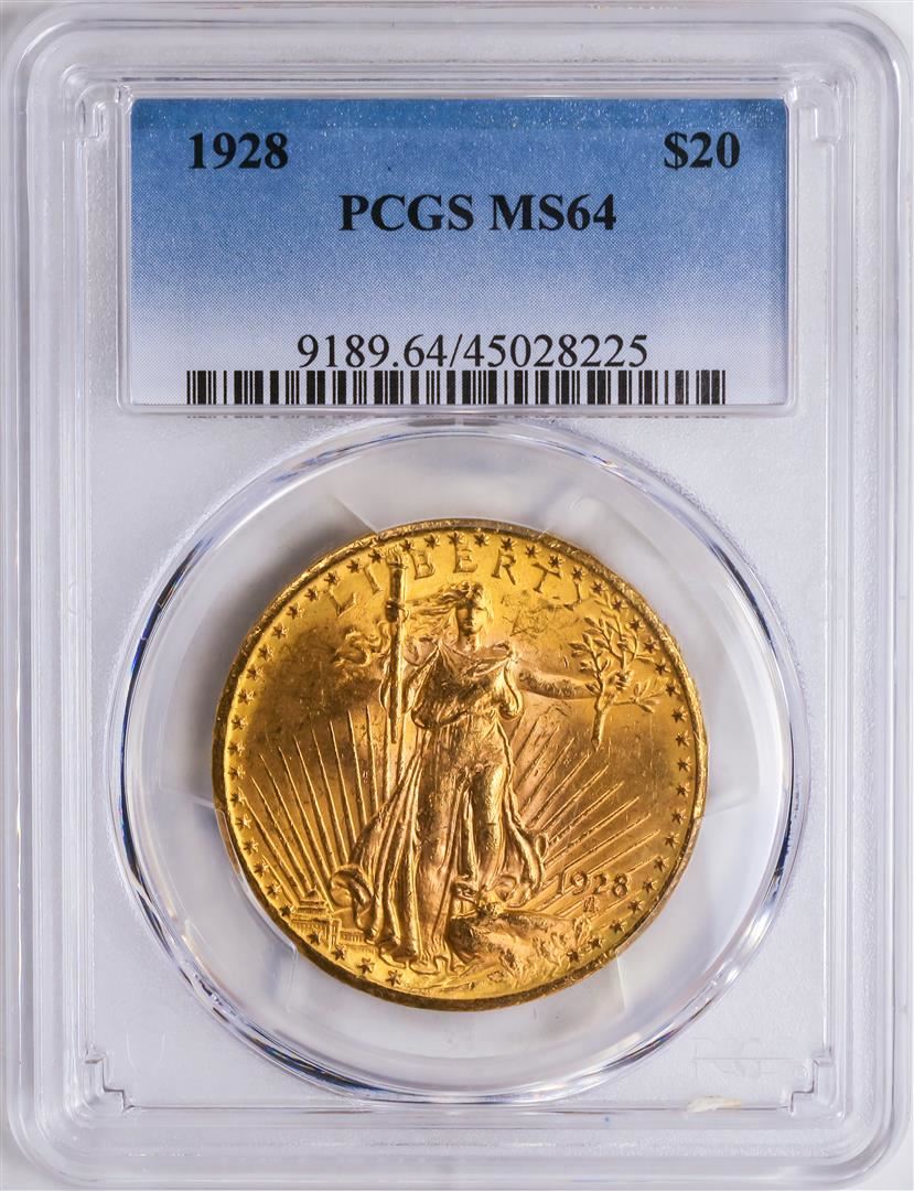 One 1928 $20 St. Gaudens Double Eagle Gold Coin PCGS MS64.