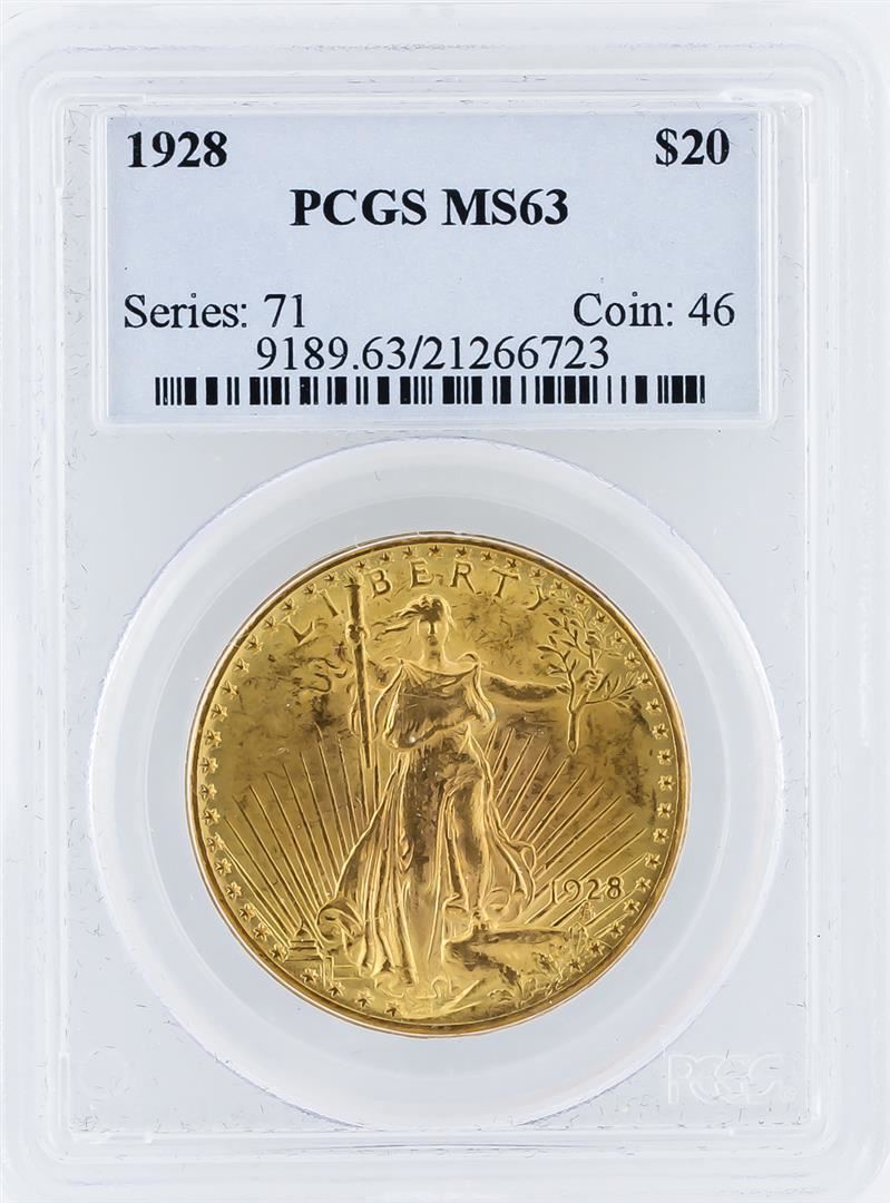 One 1928 PCGS MS63 $20 St. Gaudens Double Eagle Coin. PCGS Certified.