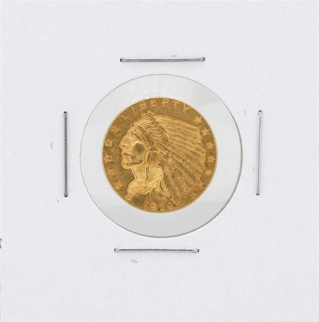 One 1929 $2.50 Indian Head Quarter Eagle Gold Coin.